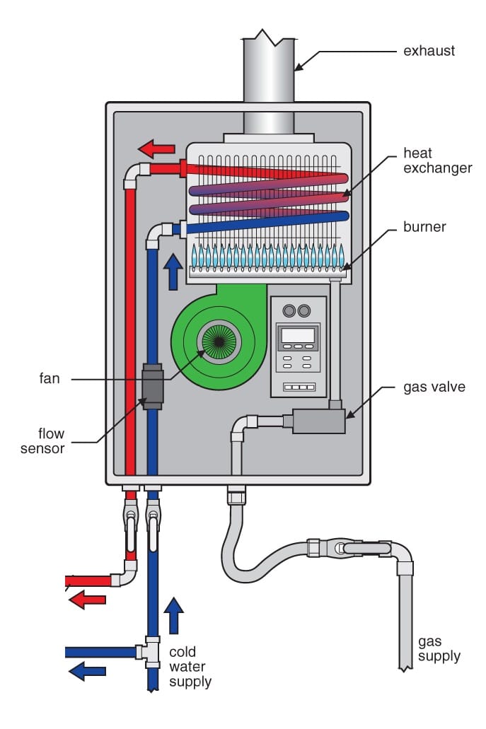 The cost of a good tankless water heater can be $1,100 – $2,500 installed. Sometimes more. Installation can require a new flue, rerouting water pipes (if you relocate the unit to the exterior), and possibly running a new gas line. Since tankless water heaters demand a lot of gas to heat water quickly, you may need to increase the gas pipe from 1/2″ to 3/4″. Finally, tankless water heaters require a 110 volt receptacle for the electronics and fans.